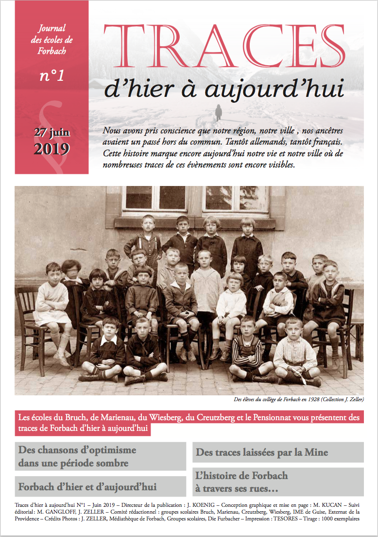 Diffusion du 1er numéro du Journal « Traces d’hier à aujourd’hui » en collaboration avec les écoles du Bruch, Marienau, Wiesberg, Creutzberg, l’Externat de la Providence et l’IME de Guise. Réalisation qui s’inscrit dans le cadre du projet « Traces » visant à retrouver les traces du passé dans la ville d’aujourd’hui.